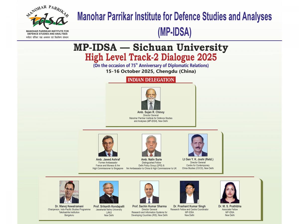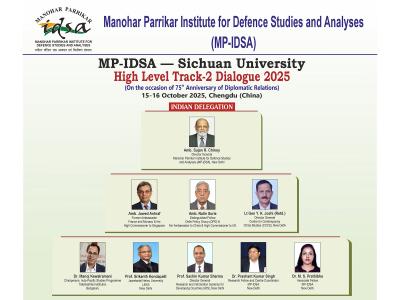 Manohar Parrikar IDSA, New Delhi stated in a post on X, "A delegation led by DG IDSA India Sujan Chinoy will depart today for Chengdu (China) for the MP-IDSA Sichuan University High Level Track-2 Dialogue on 15-16 October 2025. The Dialogue will mark the 75th anniversary of India China diplomatic ties."