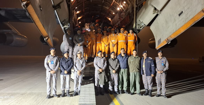 Colombo, Nov 29 The National Disaster Response Force (NDRF) on Saturday deployed two specialised rescue teams to Sri Lanka under 'Operation Sagar Bandhu' to assist in relief and rescue efforts following Cyclone Ditwah. The teams, comprising 80 trained rescuers and four canines, departed at 4:06 a.m. from the Hindon Airbase aboard an Indian Air Force IL-76 aircraft. The contingent is led by Commandant P.K. Tiwary of the 8th Battalion. An Indian Air Force C-130 J plane carrying approx 12 tonnes of humanitarian aid, including tents, tarpaulins, blankets, hygiene kits, and ready-to-eat food items also landed in Colombo.