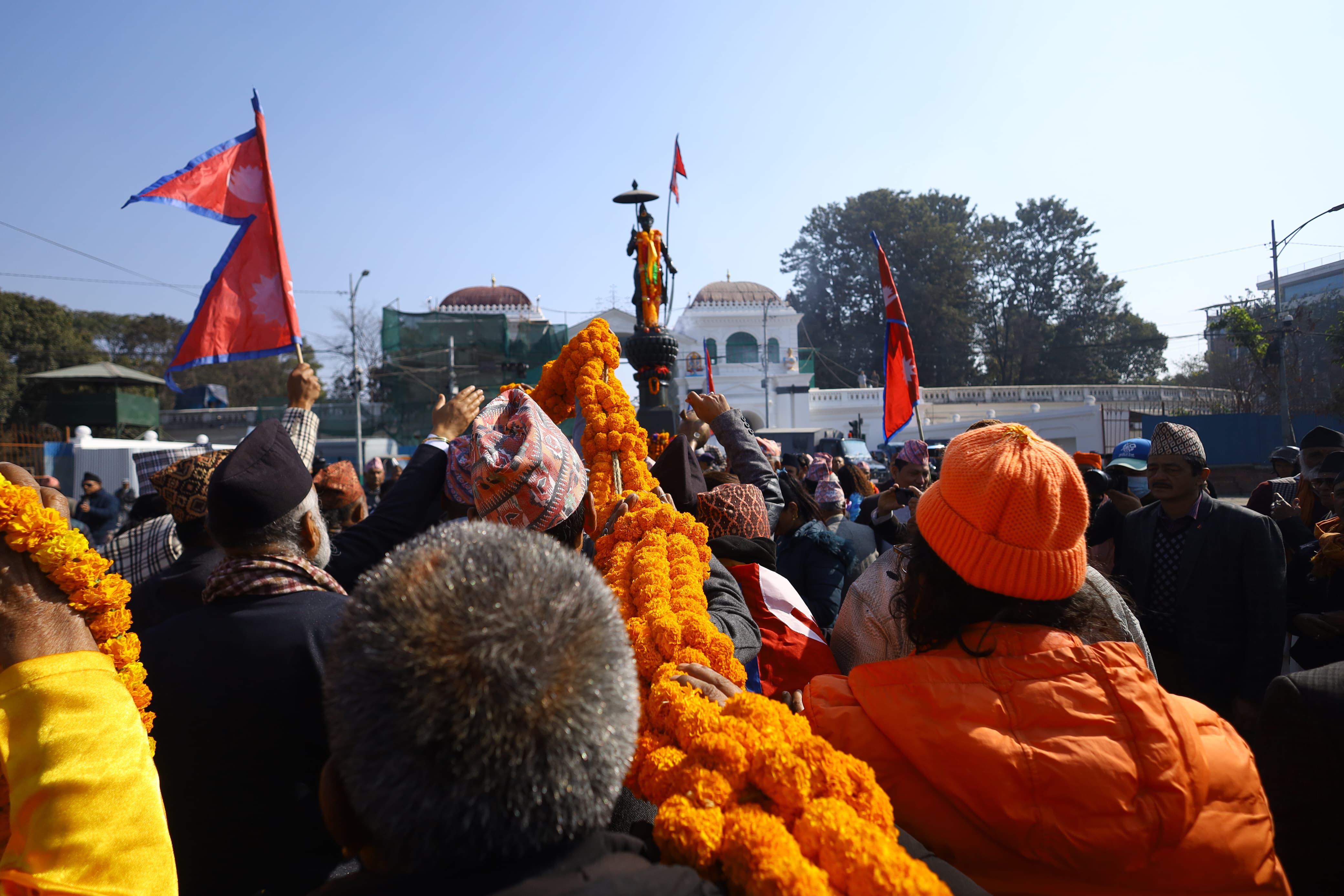 A 108-foot long flower garland, bouquets to the circumnutating statute of King Shah that stands tall in front of the nation's administrative capital- the Singhadurbar was crowded throughout the day.