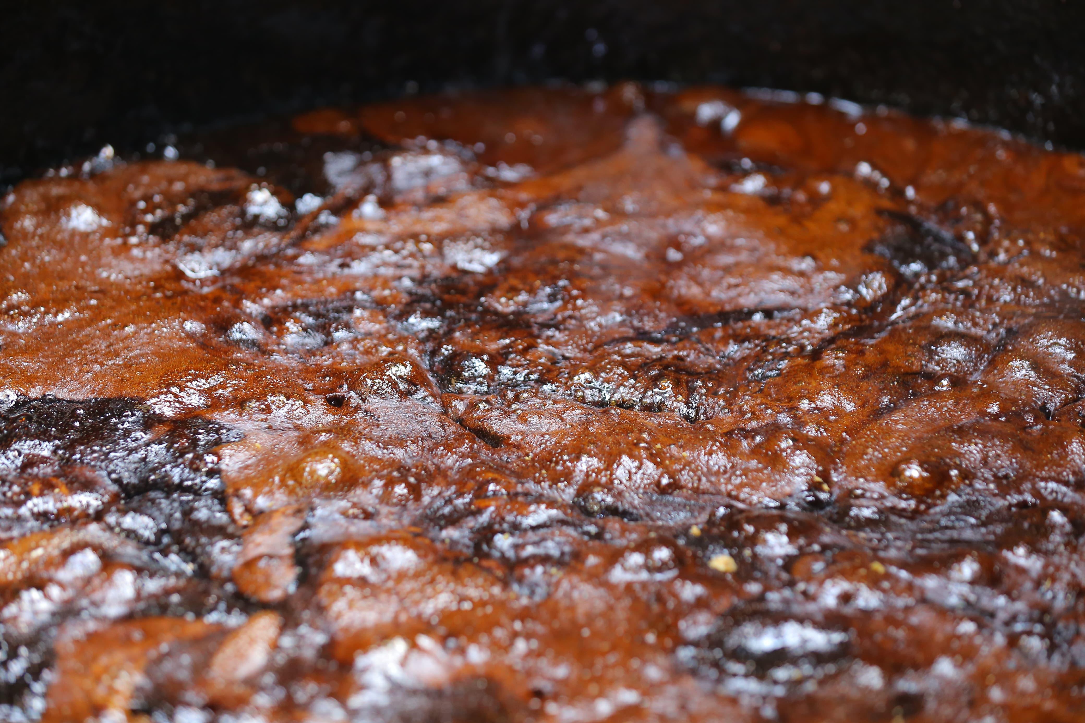 This process involves melting jaggery, stirring it continuously and then cooling it in clay pots. It is then whipped, slapped, and stretched until it turns dark brown. The confectionery is then weighed, topped with nuts, and packaged. The whole process takes two to three hours.