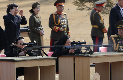 Meanwhile, photos carried by state media showed Kim's daughter Ju-ae attending the ceremony to present the rifles and take part in a shooting practice session.