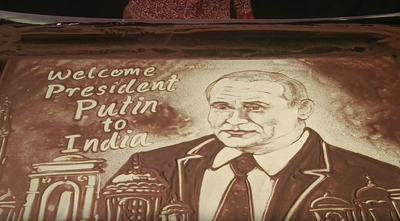 Manas Kumar Sahoo, a finalist of 'India’s Got Talent' and one of the country’s leading sand animation performers, completed the artwork in two hours. The creation was based on the theme, “Welcome President Putin to India”.
