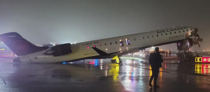 The aircraft, operated by Air Canada Express and arriving from Montreal, reportedly struck a fire truck during landing, according to initial accounts and flight-tracking data.