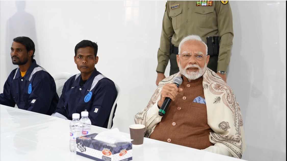Interacting with the Indian workers, he stated, "I talk about Viksit Bharat 2047 because the labour brothers of my country who have come so far to work also think about how an international airport can be made in his village. This aspiration is the strength of my country."
