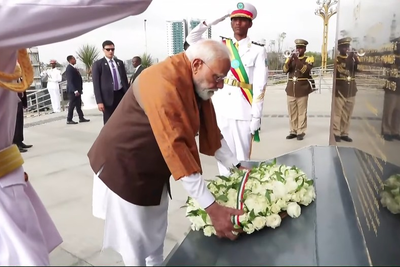 Addis Ababa, Dec 17 Prime Minister Narendra Modi laid a wreath at the Adwa Victory Monument in Addis Ababa on Wednesday, the second day of his two-day visit to Ethiopia.