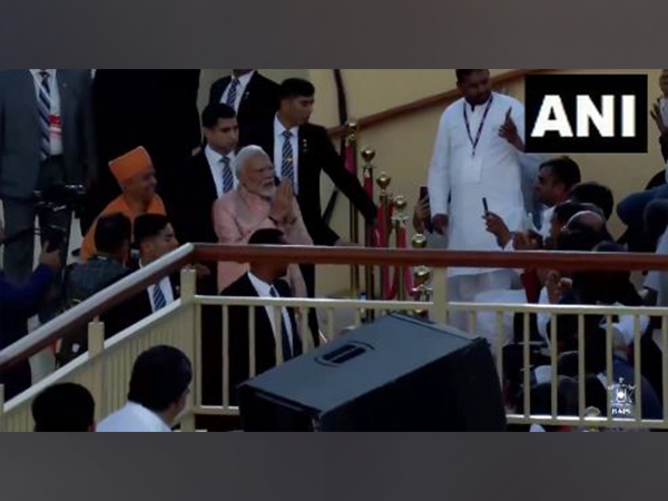 Abu Dhabi [UAE], February 14 : After inaugurating the majestic Bochasanwasi Akshar Purushottam Swaminarayan Sanstha (BAPS) Mandir, Prime Minister Narendra Modi met the artisans who crafted the architectural marvel, the first Hindu temple in Abu Dhabi, UAE.
