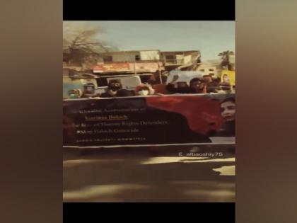 The protestors, many of them women, were seen holding placards reading: 'Stop genocide', 'cold-blooded assassination of Karmia Baloch'.