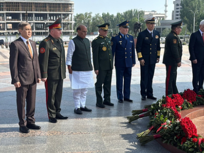 "Raksha Mantri Rajnath Singh paid floral tributes at Victory Square in Bishkek, Kyrgyzstan, during his visit for the SCO Defence Ministers' Meeting," the Ministry of Defence said in a statement on X.
