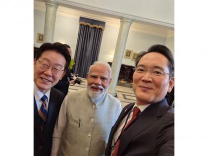 New Delhi [India], April 20 : In a powerful demonstration of the "Make in India" success story, Samsung Electronics Executive Chairman Lee Jae-yong captured a high-profile selfie with Indian Prime Minister Narendra Modi and South Korean President Lee Jae-myung during a state luncheon on Monday.