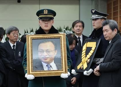 The late Lee died Sunday aged 73 while on a business trip to Vietnam after suffering cardiac arrest. His body was flown home Tuesday, beginning a five-day funeral period that saw large numbers of mourners paying tribute at his memorial altar at Seoul National University Hospital in the capital.