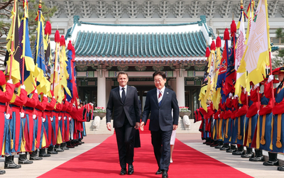 On April 2, Lee Jae Myung had hosted a dinner for French President Emmanuel Macron to mark his state visit and presented symbolic gifts aimed at further deepening bilateral ties, Cheong Wa Dae had said.