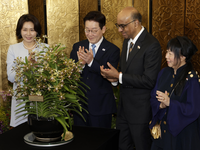 Ahead of the summit, Lee was welcomed by Singaporean President Tharman Shanmugaratnam, ceremonial head of state, at an official ceremony and attended a naming ceremony for "Vanda Lee Jae Myung Kim Hea Kyung," an orchid hybrid named after Lee and the first lady to honor Lee's state visit.