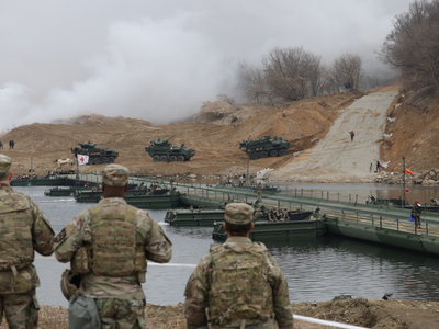 Seoul, March 14 The South Korean and US militaries staged joint river-crossing drills in the border county of Yeoncheon on Saturday as part of their annual key springtime exercise aimed at enhancing interoperability between the allies.
