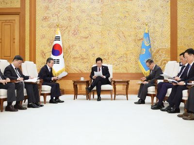 At Cheong Wa Dae, Lee met with his aides over tea, including National Security Adviser Wi Sung-lac and Kim Yong-beom, presidential chief for policy, and other senior officials.