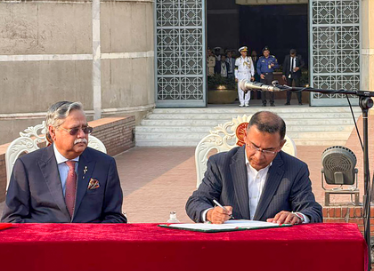 After he took the oath, other members of the cabinet - including BNP leaders Mirza Fakhrul Islam Alamgir, Amir Khasru Mahmud Chowdhury, Salahuddin Ahmed, Iqbal Hasan Mahmud, Hafiz Uddin Ahmed and others - were also sworn in.