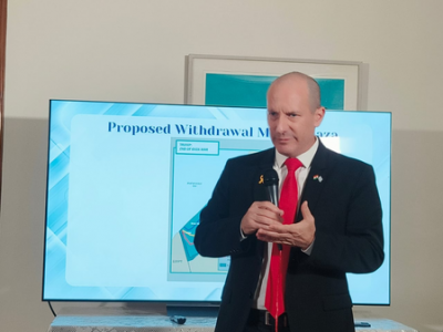 The Israeli envoy explained that once hostages are released, Israel would withdraw to the yellow line until it secures the designated security perimeter.