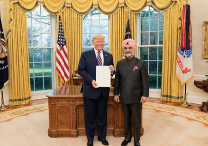 Washington, April 17 US President Donald J. Trump has congratulated Taranjit Singh Sandhu on his appointment as the Lieutenant Governor of Delhi, praising his diplomatic record and commitment to India–US ties.