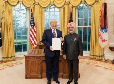 Washington, April 17 US President Donald J. Trump has congratulated Taranjit Singh Sandhu on his appointment as the Lieutenant Governor of Delhi, praising his diplomatic record and commitment to India–US ties.