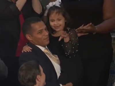 She received a standing ovation when Trump called her up, and her father, Marcus Coleman, held her up.