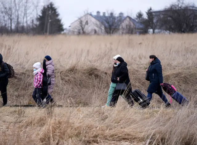 Ukraine-Russia Conflict: Pictures of Ukrainians walking through fields to the border crossing in Medyka, Poland