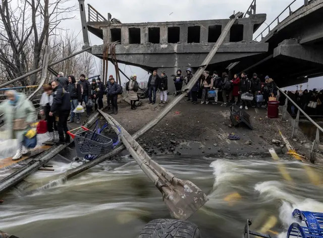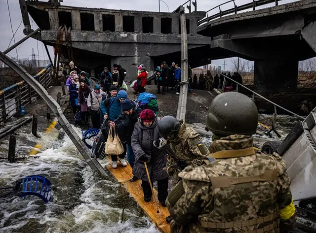 See the pictures of Ukrainians fleeing Irpin, on the parts of the town of the capital Kyiv, which has been heavily bombarded by Russian forces.