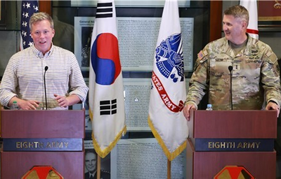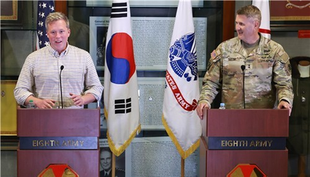 "I think the short answer is that both are basic threats," the US Army secretary replied when asked about whether the main purpose of the USFK is North Korea or China.