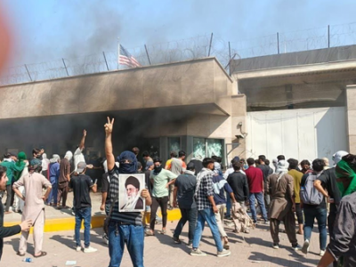 Visuals circulating on social media showed doors and windows of the US Consulate in Karachi smashed and set on fire, and chaotic scenes outside the consulate premises, with demonstrators damaging property and clashing with security personnel.