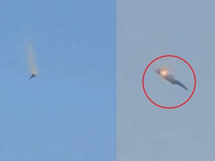 Videos shared on X (formerly Twitter) show a fighter jet descending from a certain height and hitting the ground before bursting into huge flames. Follow Latest Update on US-Israel Attack Iran.