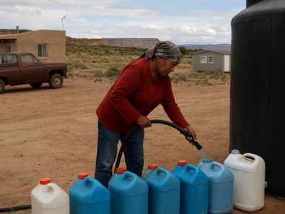 The cost disparity is equally striking. Families who haul water “spend the equivalent of $43,000 per acre foot, compared with $600 per acre foot from a typical suburban water user in the region,” Nygren said. He called it “absolutely unacceptable, in 2024, more than one-third of our people, including our children and our elders, do not have running water.”