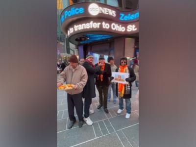 New York [US], January 22 : Ahead of the 'Pran Pratishtha' ceremony of the Ram Mandir in Ayodhya, the members of the 'Overseas Friends of Ram Mandir' distributed laddoos at Times Square in New York on Sunday (local time).