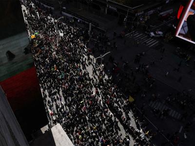 New York [US], March 29 : New Yorkers packed the streets around Times Square and marched past its famous billboards, holding signs and chanting slogans, as part of nationwide "No Kings" rallies - a protest against US President Donald Trump and his administration's policies.