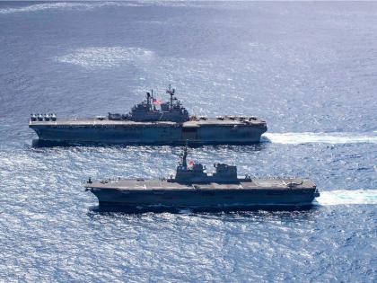 The USS Tripoli is part of the Tripoli Expeditionary Strike Group operating under the US Seventh Fleet. The group includes the USS Tripoli amphibious assault ship, the guided missile cruiser USS Robert Smalls and the destroyer USS Rafael Peralta, along with the 31st Marine Expeditionary Unit.