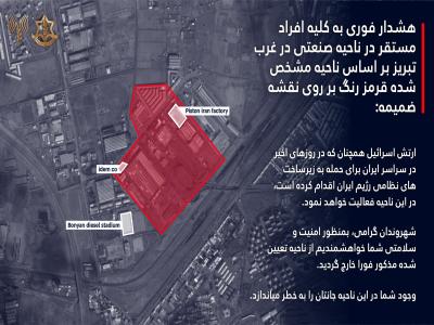 }}}}‼️ هشدار فوری به کلیه افراد مستقر در ناحیه صنعتی در غرب تبریز بر اساس ناحيه مشخص شده قرمز رنگ بر روی نقشه ضميمه: