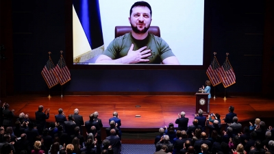 New York, March 16 As Russia hammered Kiev with artillery with its troops within 30 km of the capital, Ukraine President Volodymyr Zelensky made a direct appeal on Wednesday to US Congress for putting his country under a no-fly zone, a proposal US President Joe Biden had rejected.