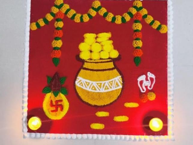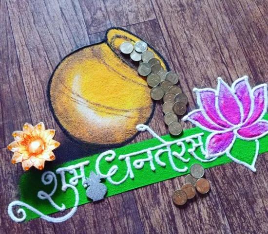 For a beautiful Dhantrayodashi rangoli, you can use vibrant colors and incorporate creative elements to make it truly festive.