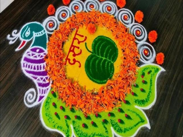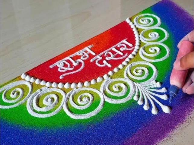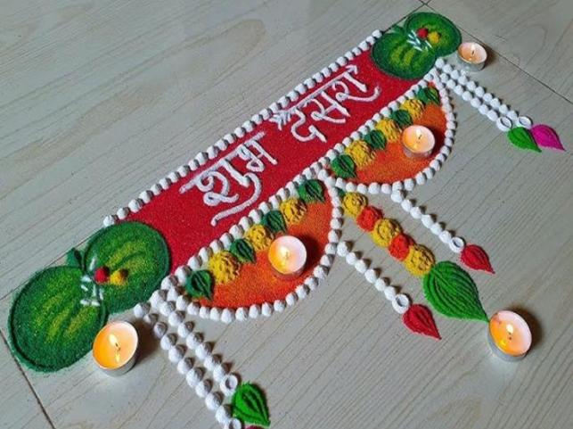 Dussehra is a festival of tradition, joy and excitement. On this day, Apta leaves are considered like gold and have special significance. On this day, it is our traditional custom to give 'gold' to each other by giving Apta leaves. Festivals like Dussehra - Diwali are incomplete without Rangoli. On Dussehra, we celebrate the festival by making different types of beautiful, attractive, and striped Rangoli.