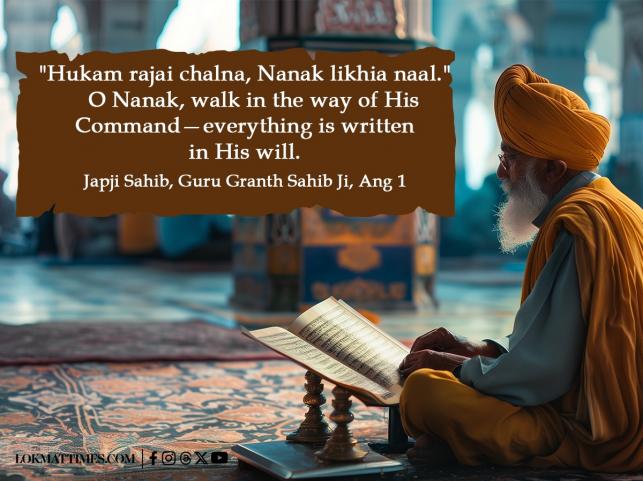 7. "Hukam rajai chalna, Nanak likhia naal."