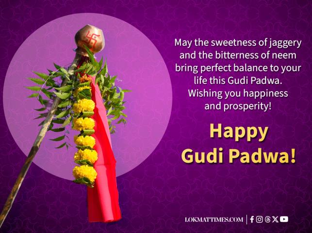 4. May the sweetness of jaggery and the bitterness of neem bring perfect balance to your life this Gudi Padwa. Wishing you happiness and prosperity!
