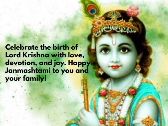 3. Celebrate the birth of Lord Krishna with love, devotion, and joy. Happy Janmashtami to you and your family!