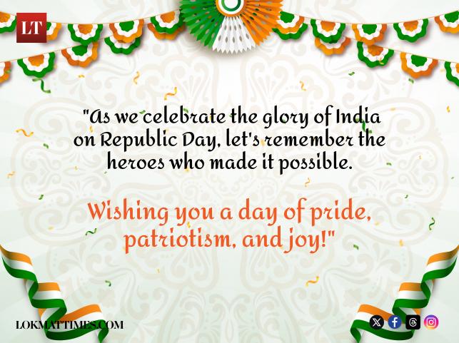 3. "As we celebrate the glory of India on Republic Day, let's remember the heroes who made it possible. Wishing you a day of pride, patriotism, and joy!"