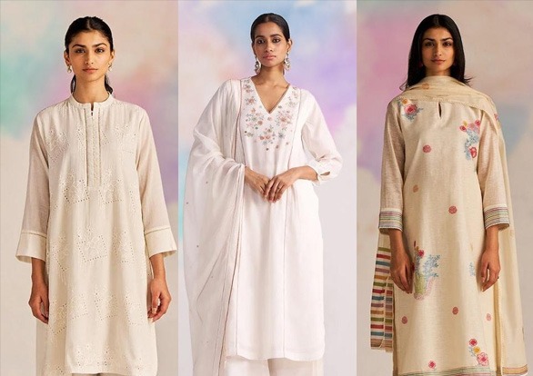 You can explore easy-to-wear Kurta sets in white and off-white for a clean look that photographs beautifully.