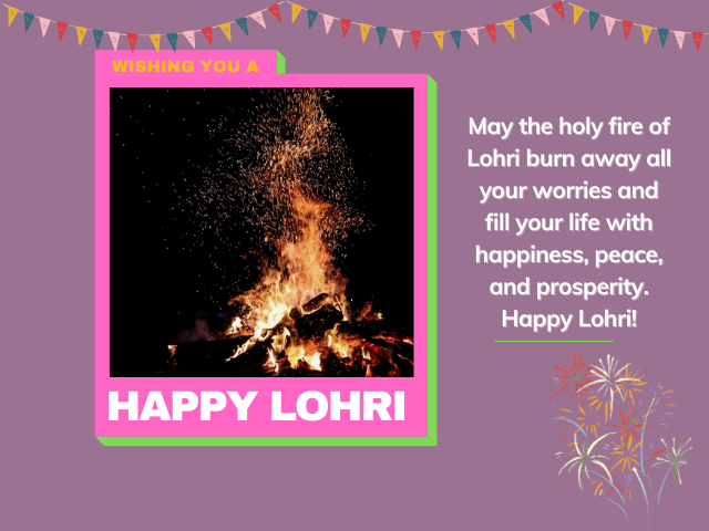 4. May the festival of Lohri shower you with abundant blessings, good fortune, and countless reasons to smile. Celebrate with joy and love.