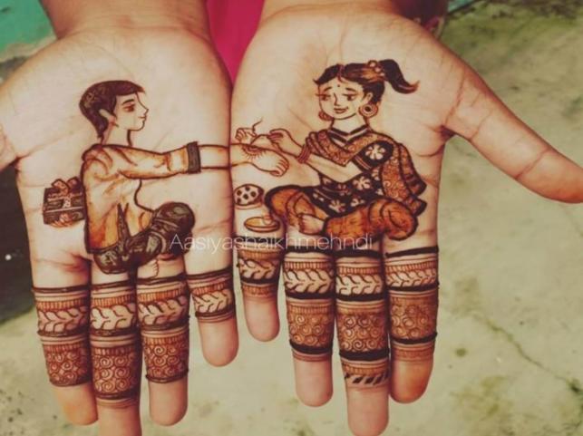 Sister get dressed up and do Aukshan and tie rakhi to his hand and exchange gifts with each-other. Applying mehndi to hand is also one of the tradition. Here are few mehndi options that you can apply on your hand this rakhi purnima.