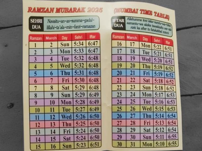 Ramadan 2025 Timetable For Mumbai: Ramzan Fasting Schedule, Sehri and Iftar Timings for Each Roza