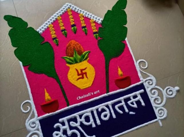 Many people do puja of lord satyanarayan on 26 January as many people think it is a day for new beginnings, gratitude, and prayer—for peace, prosperity, or starting something new (house, business, marriage plans, etc.). Some families like to combine prayers for personal well-being with prayers for the nation’s prosperity, since Satyanarayan Puja is about truth, harmony, and blessings. If you are also performing Satynarayan puja here are some rangoli design options.