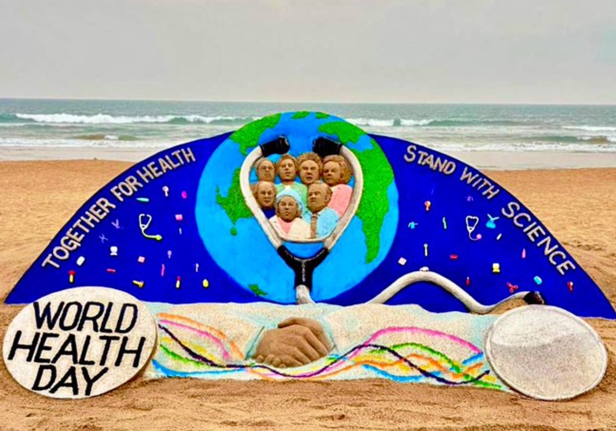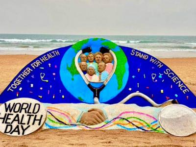 Odisha sand artist Padma Shri Sudarsan Pattnaik created a 6-foot sand sculpture at Puri Beach, Odisha on the occasion of World Health Day. Speaking to the news agency IANS, Pattnaik said that the art is dedicated to doctors, nurse and medical volunteers. "For World Health Day, we have created these sculptures conveying WHO’s message 'Together for Health, Stand with Science.' Through art, I honour and salute the work tirelessly to keep everyone healthy," he added.