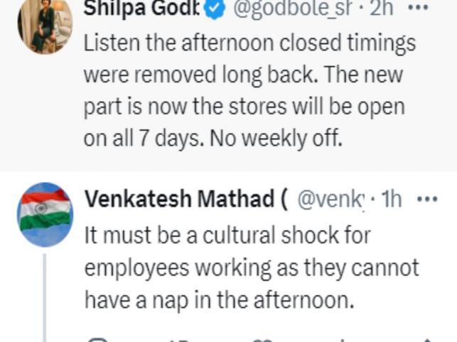 Reactions to the post both from Pune and outside of Pune have been both informative and funny. A user mentioned that the afternoon closing times had been removed long back and the new change was that the store will remain open all days of the week. Another user quipped how this would be a culture shock for the employees who cannot take a nap in the afternoon.