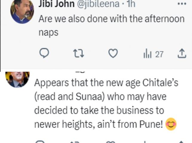 Another X user said, Are we also done with the afternoon naps? Another X user feels that new-age Chitale owners ain’t from Pune! and he wants to take the business to newer heights. "Now what else is left for Punekars to have ' जाज्वल्य अभिमान ' (Atmost Pride) about... !?", Said another user.