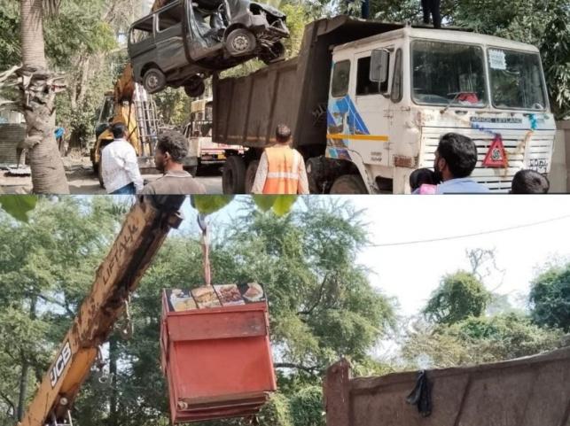 In the action, thirteen abandoned vehicles were lifted and taken to the Bata Compound in Narayan Koli Chowk, Chendani Kolivada, Bara Bungalow, and Kopari Colony. In addition, five abandoned vehicles and 18 stalls were removed from the Parbwadi, Mental Hospital, behind the Civil Hospital, and Banjara Colony areas.