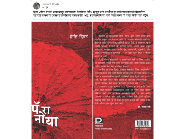 In protest against the imposition of Hindi as the third language, writer and poet Hemant Divate has announced on social media that he will return the award he received from the Maharashtra government. He stated, “As a mark of protest against this decision of imposing Hindi as the third language, I am returning the award — including the prize money — that I received from the Maharashtra government for my poetry collection Paranoia. I will withdraw my decision only if the government reverses its decision.” Divate's stand has been praised by many.